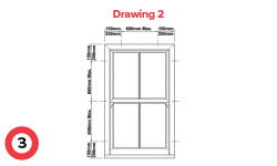 - Ensure outer frame is not bowed, maintain 3mm gap between sashes and frame, see drawing 4.